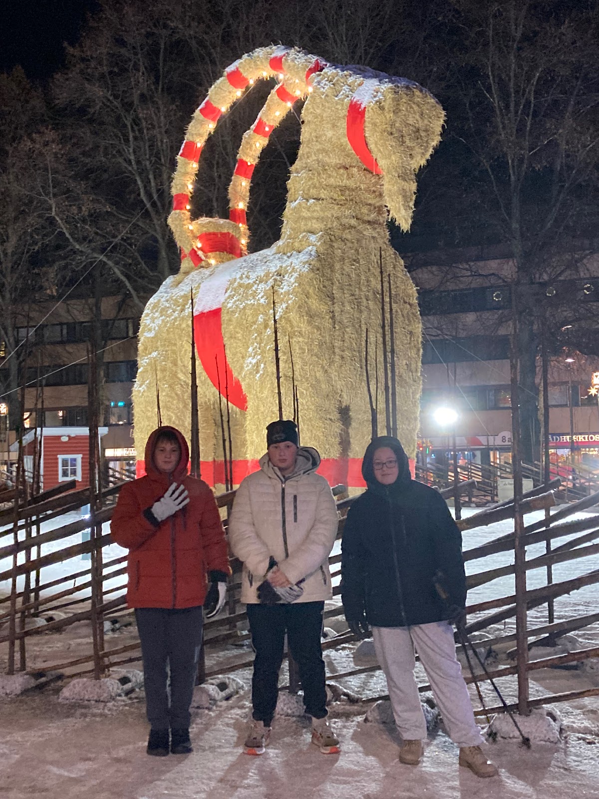 The statue is based on Old Man Rosenbom (Mats Hindiksson Rosenbom) who was one of the first settlers in Karlskrona. The story is that Rosenbom was out begging when a sculptor hit him and threw him out into the snow. Later he went looking to apologise, but Rosenbom hid by the church and froze to death. As an apology the sculptor created the poorhouse.