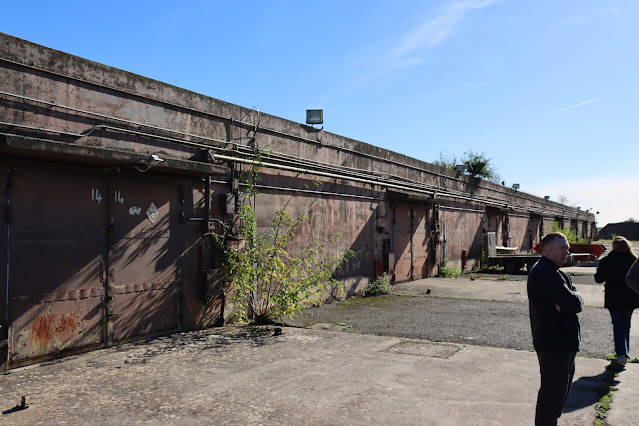 We met back up with the group outside the bomb storage bunkers. The left most bunker had a strange join line in the concrete - it turns out that 14 bunkers were planned, but 13 were installed. The base commander than ordered the extra one to be added onto the end.