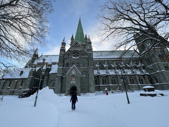 The next day (3rd Jan) we headed into Trondheim. The trip didn't start very well when we couldn't find a park and ended up stuck on what appeared to be a shared car/pedestrian mall, blocked by bollards and unable to turn around due to how narrow the road was.